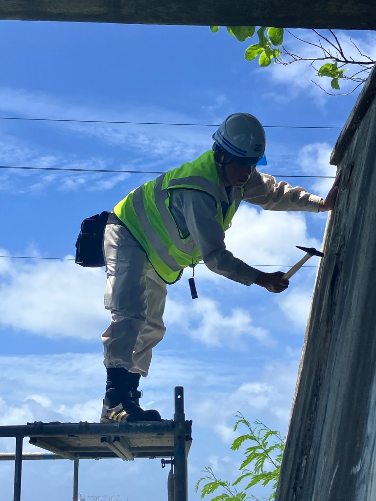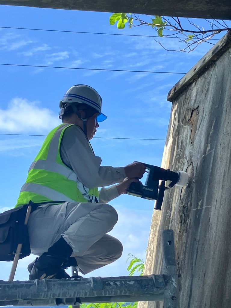 The project objective is to appropriate asset management systems of Roads, Bridges and Heavy Machinery for the next five years period (2025-2030). Currently, eight consultants have been dispatched to Majuro for a weeklong support to MPWIU/PMU. Three of the team members will be engaging in the non-destructive bridge inspection, which is a long-awaited inspection method needed by the MPWIU/PMU team. The other members will survey the roads, the heavy machinery situation and climate change related issues. The MPWIU team consisting of Chief of Roads & Grounds, Enjan Kiotak along with AAS of Operations Xavier Loeak, AS Jimata Kabua Jr. and PMU Manager James Myazoe II have accompanied the JICA Team along with other employees at the Majuro bridge and various other locations.